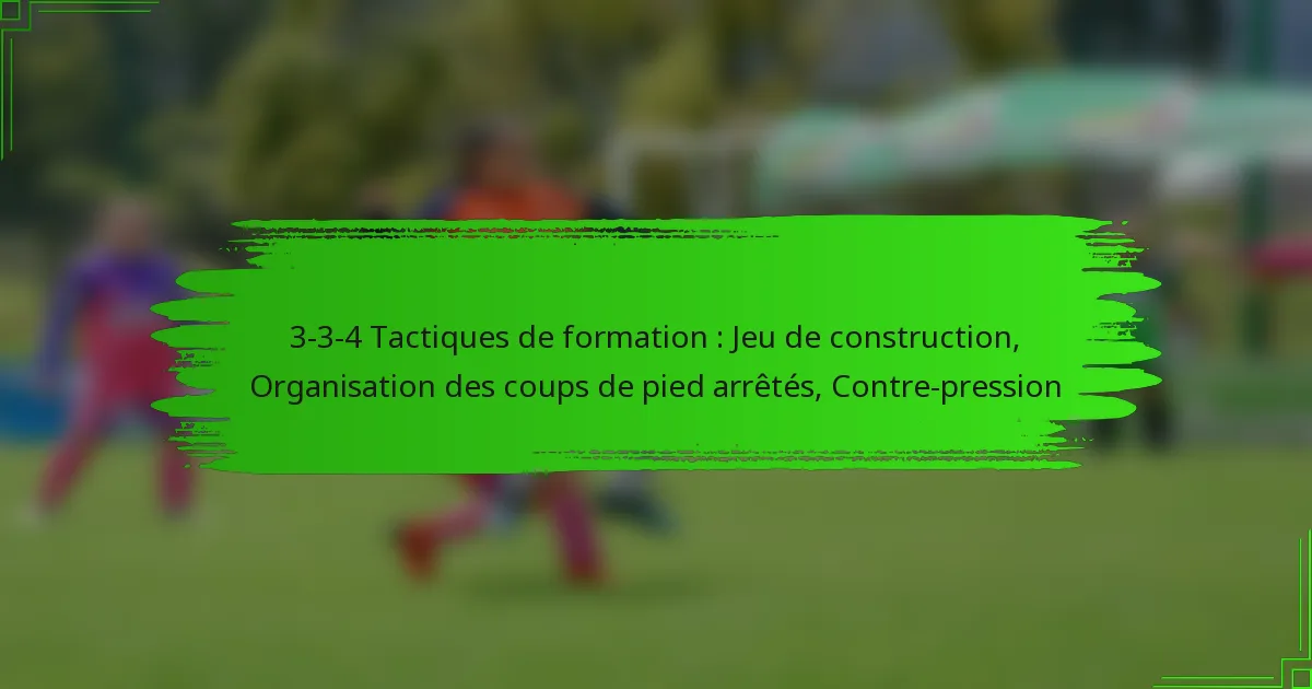 La formation 3-3-4 est un dispositif tactique au football qui met l’accent sur une forte présence offensive tout en maintenant une stabilité défensive. Cette formation facilite un jeu de construction efficace grâce à un espacement stratégique et un mouvement fluide, permettant aux équipes de passer sans effort de la défense à l’attaque. De plus, maîtriser l’organisation des coups de pied arrêtés est crucial pour maximiser les opportunités de marquer et renforcer la résilience défensive lors des moments critiques du match.